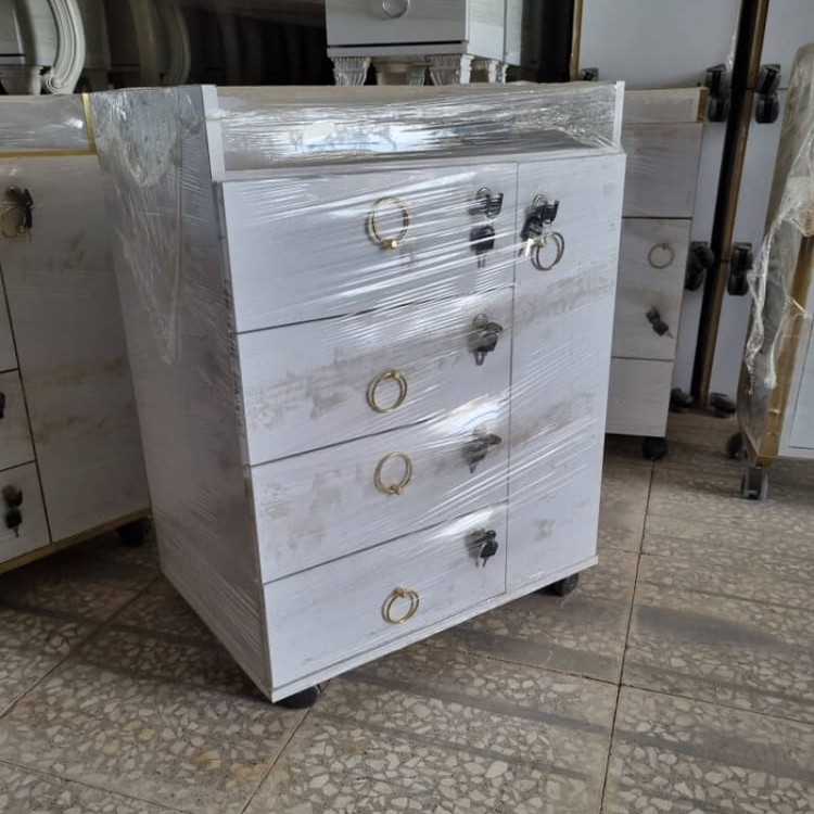 ترولی چهار کشو یه کمد قفل دار با بهترین کیفیت و مناسب ترین قیمت مستقیم از تولید کننده بدون واسطه دارای چرخ برای جابه جا شدن کاملا مستحکم و بادوام رنگ دسته طلایی ارسال به سراسر ایران و استان ها تهران و حومه های تهران با تشکر