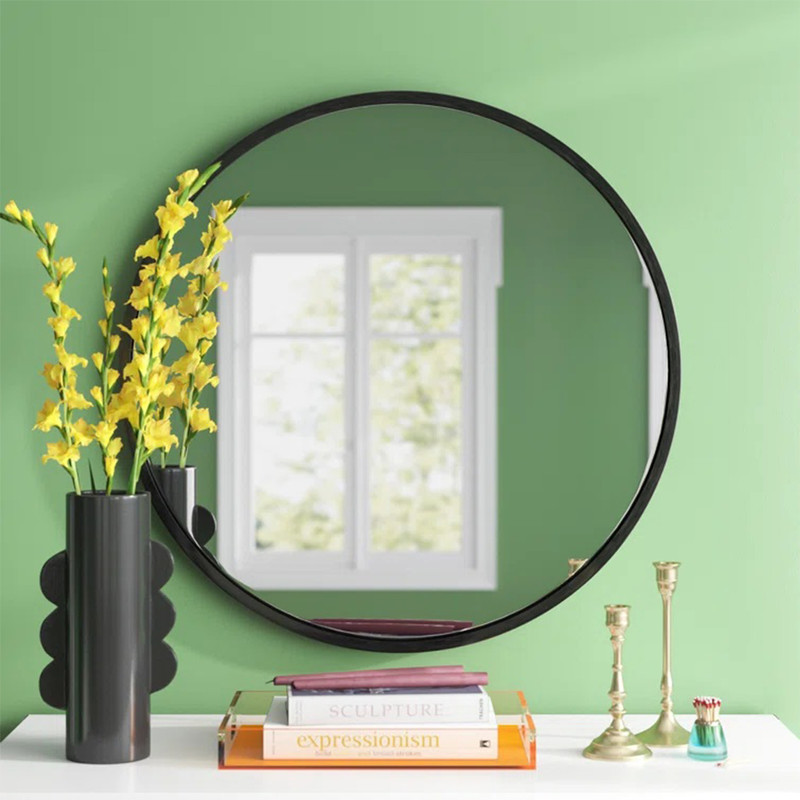 کیفیت و ظرافت منحصر بفرد ابعاد محصول :قطر 80 سانتی متر آینه شفاف سوپر کلییر پروفیل فلزی دوبل با رنگ کوره ای