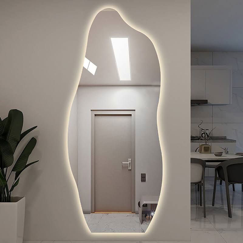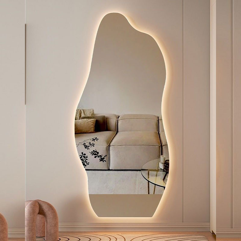 دور آینه آینه کاملا صاف و صیقلی پشت آینه کاملا با MDF کاور شده LED کم مصرف با طول عمر بالا نصب آسان با فیتینگ دیواری آینه سوپرکلییر 4 میل