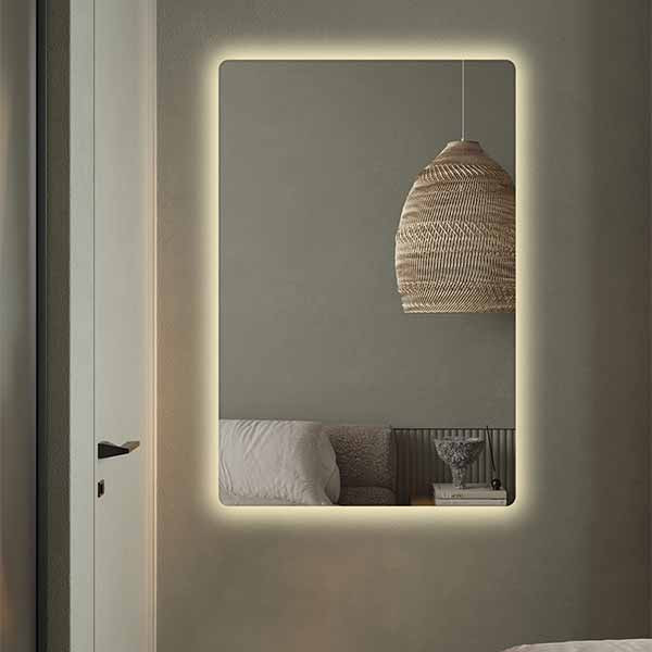 دور آینه آینه کاملا صاف و صیقلی پشت آینه کاملا با MDF کاور شده LED کم مصرف با طول عمر بالا نصب آسان با فیتینگ دیواری آینه سوپرکلییر 4 میل