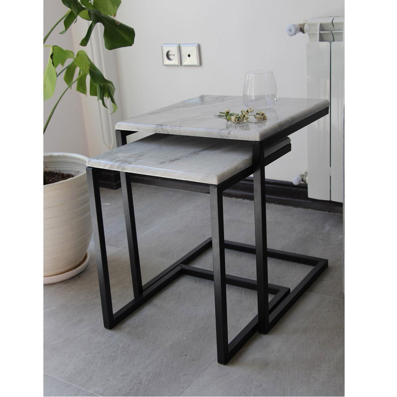 تنوع رنگی مربوط به فریم فلزی می باشد و رنگ MDF ثابت است. جنس صفحات MDF روکشدار طرح سنگ است. رنگ فریم فلزی الکترواستاتیک کوره ای است. ابعاد عسلی بزرگ 40x40 ارتفاع 50 ابعاد عسلی کوچک 35x35 ارتفاع 45