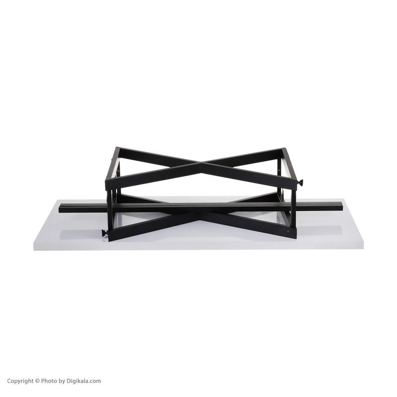 صفحه MDF شرکت پاکچوب ،نوار پی وی سی 2 میلیمتری، ضخامت صفحه 32 میلیمتر(دوبل) بدنه پروفیل فلزی 20x40 میلیمتر با رنگ کوره ای سوپر مات پایه ی پیچی قابل تنظیم تا 3 سانتی متر