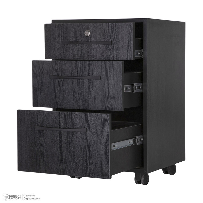 : نگهداری اسناد و مدارک - مناسب برای کارمندان و مدیران اداری و شرکتی - مناسب برای ادارات و شرکت ها - دارای سه کشو و یک کشو قفل دار - تمام قسمت های چوبی از ام دی اف - دارای 4 چرخ برای جابجایی راحت