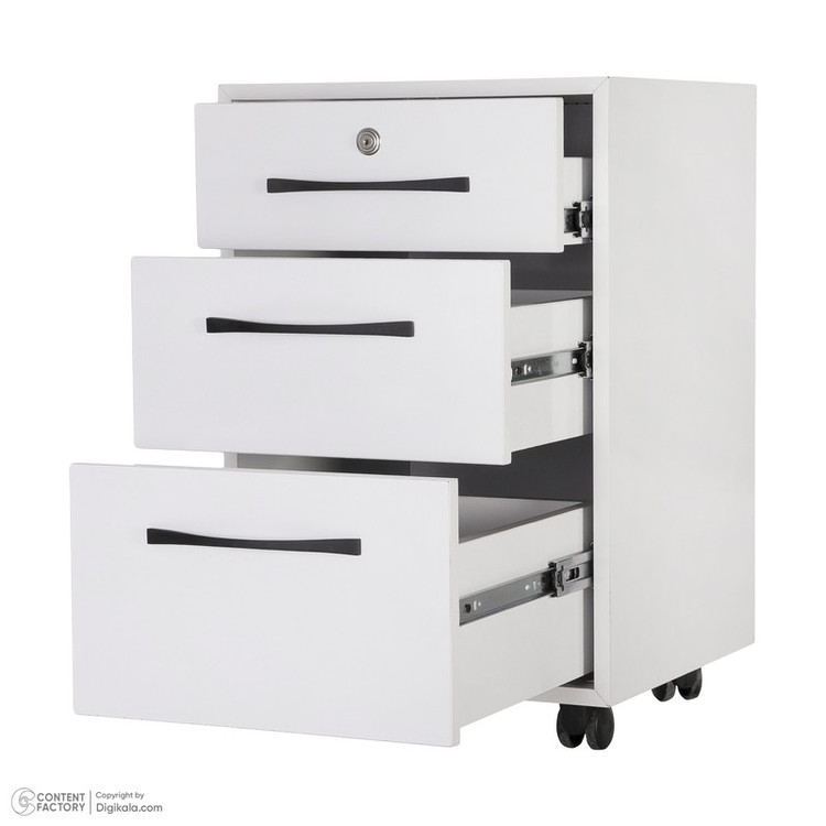 : نگهداری اسناد و مدارک - مناسب برای کارمندان و مدیران اداری و شرکتی - مناسب برای ادارات و شرکت ها - دارای سه کشو و یک کشو قفل دار - تمام قسمت های چوبی از ام دی اف - دارای 4 چرخ برای جابجایی راحت