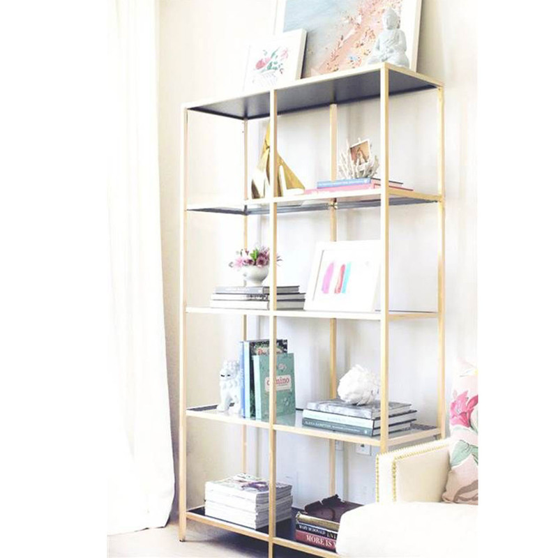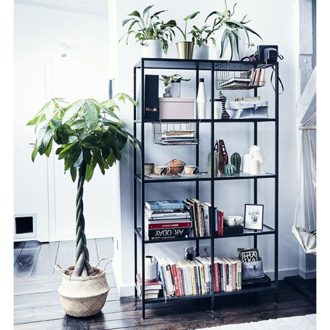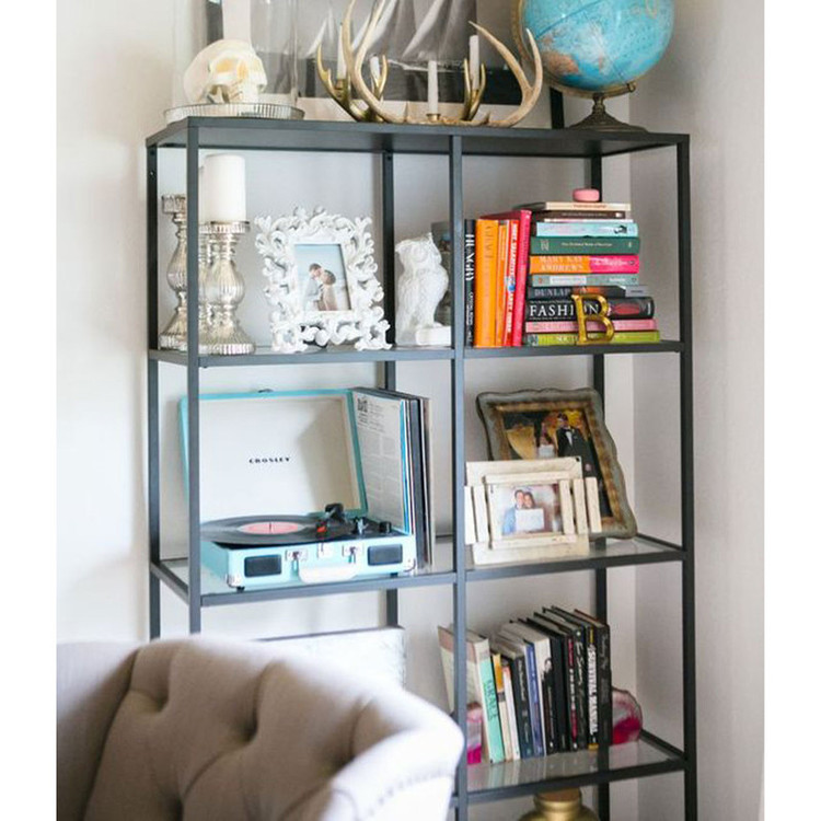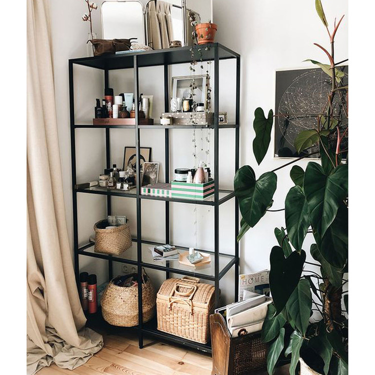 رنگ فریم فلزی متغیر است. (الکترواستاتیک کوره ای) جنس صفحات بلایی و پایینیMDF روکشدار مشکی است و جنس 3صفحه میانی شیشه ساده و شفاف است.