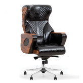 با ابهت و با کلاس همین چند کلمه برای توصیف صندلی مجلل مگاسیس 4 کافیست تلفیق هنرمندانه چوب و چرم در این محصول زیبا، امکان منطبق شدن صندلی با دکوراسیون های کلاسیک و نئوکلاسیک را مهیا کرده است و جلوه خاصی به این محیط ها خواهد داد مکانیزم ویژه (اتوبوسی) بکار رفته کارایی و راحتی را در کنار زیبایی برای این صندلی تضمین می کند این نوع مکانیزم به لحاظ حرکتی نرم ترین و مقاومت ترین نوع خود می باشد و امکان تنظیم زاویه دلخواه تکیه گاه و تنظیم دستی نرمی و سفتی پشتی را به استفاده کننده می دهد پایه های فولادی به همراه چرخ های ژله ای ابعاد بزرگ و وزن نسبتا زیاد صندلی را به راحتی تحمل می کند و حرکت روان را برای جابجایی در محیط کار مهیا می کند گروه مبلمان هنر صنعت اوان این محصول پرطرفدار را با بسته بندی صادراتی با مشخصات فقط در دو رنگ مشکی و قهوه ای تولید و عرضه می کند.