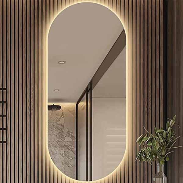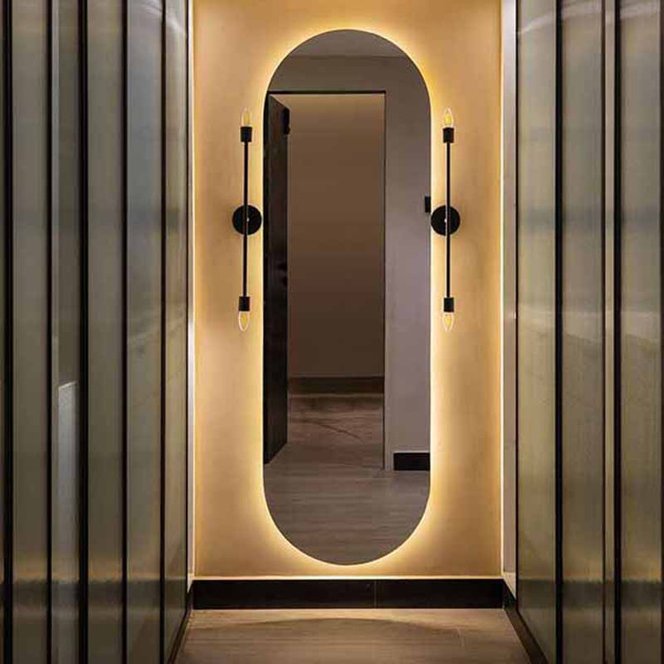دور آینه کاملا صاف و صیقلی پشت آینه کاملا با MDF کاور شده LED کم مصرف با طول عمر بالا نصب آسان با فیتینگ دیواری آینه سوپرکلییر 4 میل