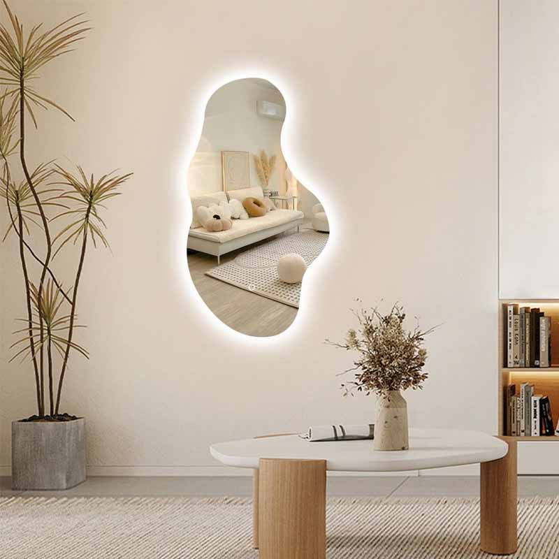 دور آینه کاملا صاف و صیقلی پشت آینه کاملا با MDF کاور شده LED کم مصرف با طول عمر بالا نصب آسان با فیتینگ دیواری آینه سوپرکلییر 4 میل