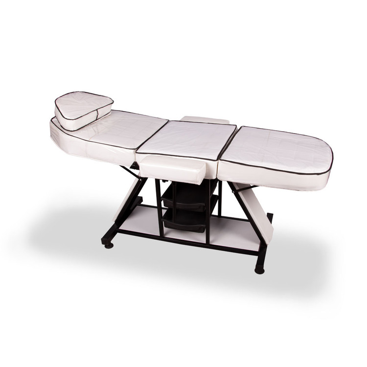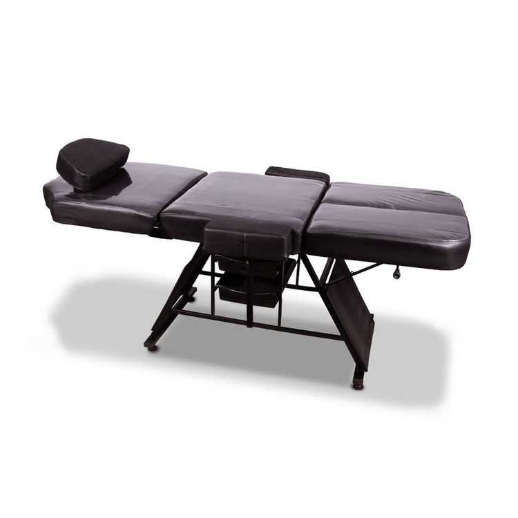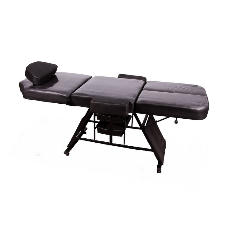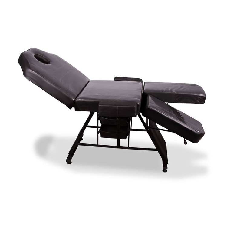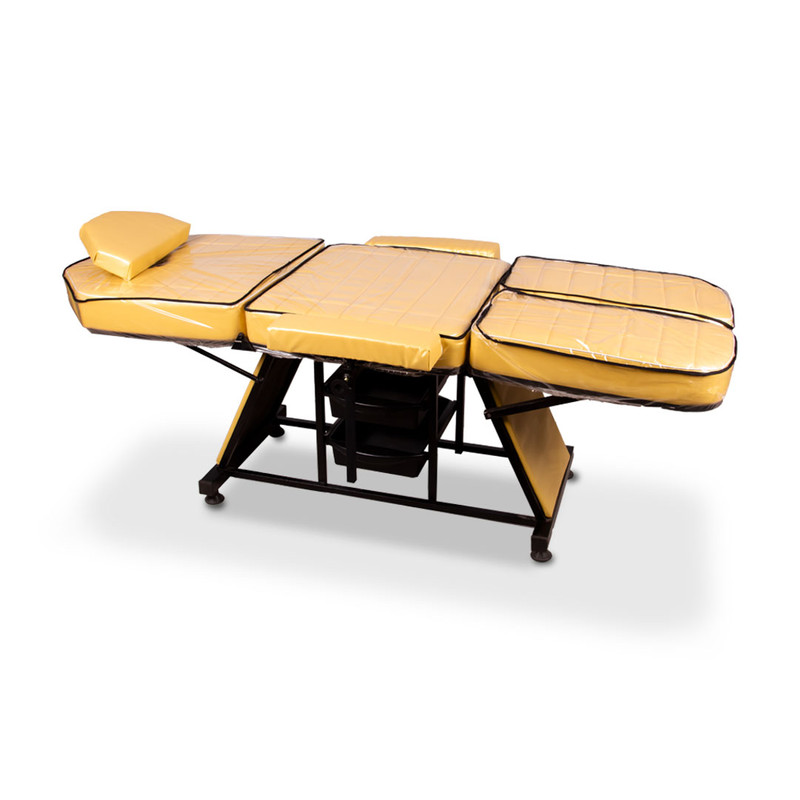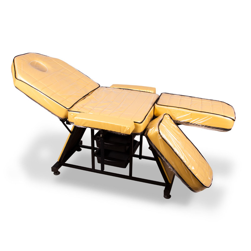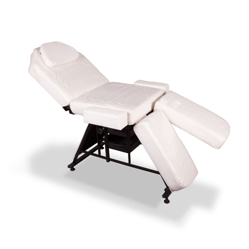 در ساخت پایه ها و بدنه ی تخت ماساژ 4 تیکه، آهن به کار می رود که چون از استقامت بالایی برخوردار است قابلیت تحمل وزن بالایی به آن می بخشد. در لایه های میانی تشک، فوم سرد مرغوب به کار رفته که زیبایی ظاهری محصول را در بلند مدت حفظ می کند. به کار گیری چرم باکیفیت به عنوان روکش محصول از ویژگی های مثبت آن شمرده می شود. ابعاد تخت برابر با 180x70 سانتی متر می باشد. این محصول در سه رنگ سفید ، مشکی ، طلایی تولید می شود.