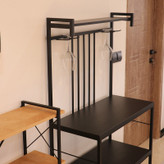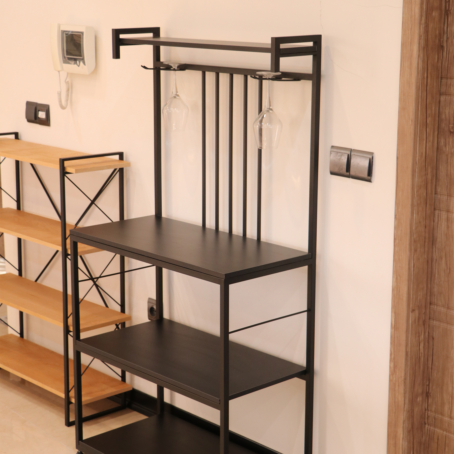 این محصول کافی بار وی ای پی ام دی دیزاینه که با ابعادی بزرگ تر و با امکانات بیشتری ساخته شده و مناسب برای کساییه که به فضای بیشتری برای قهوه ساز ها و وسایل مورد نیازشون دارن طول این کار 80 سانت و عمق این محصول 40 سانته که در ارتفاع 150 سانتی متر ساخته شده و سه طبقه مجزا در پایین کافی بار و یک نیم طبقه هم بالای محصول وجود داره و زیره اون چهر عدد جای لیوان گیلاس تعبیه شده جنس بدنه این محصول از آهن 2در2 با رنگ کوره ای استاتیک مشکی ماته که با جوش Co2 به هم متصل شده و مقاومت بسیار بالایی داره جنس صفحه ها از MDF درجه یک وارداتیه و زیر محصول چهار عدد پایه رگلاژی قابل تنظیم وجود داره که دو عدد پایه اضافه هم همراه محصول ارسال میشه تمامی عکس ها مربوط به کالای ام دی دیزاینه و همه تصاویر عکس های واقعی خود محصوله و کالای ارسالی با تصاویر هیچ تفاوتی ندارد