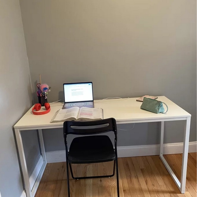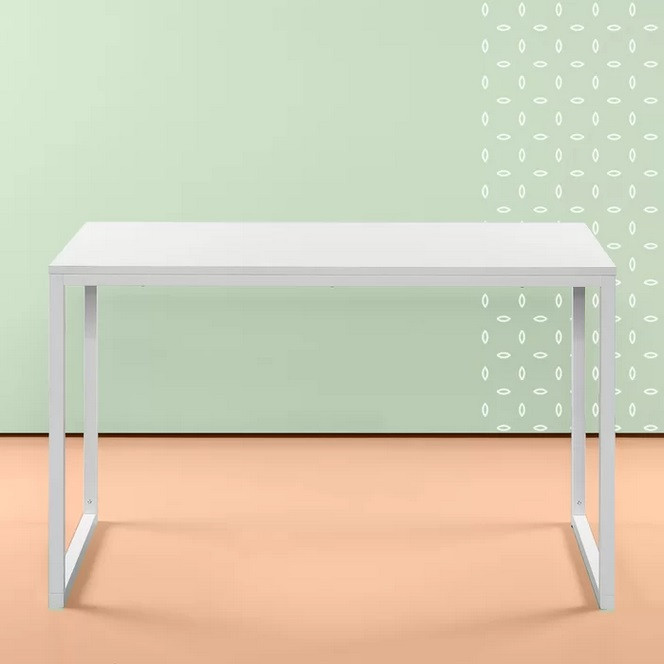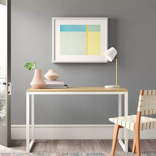 خواه در حال کار روی لپ تاپ خود باشید و یا نوشتن یادداشت های تشکرآمیز برای خانواده و دوستان ، فضای کاری کافی برای این میز تحریر مستطیل شکل ساده را دوست خواهید داشت. این قطعه ساخته شده از یک قاب استیل سفید ، دارای رومیزی چوبی ساخته شده ، دارای پایه های سورتمه ای است.