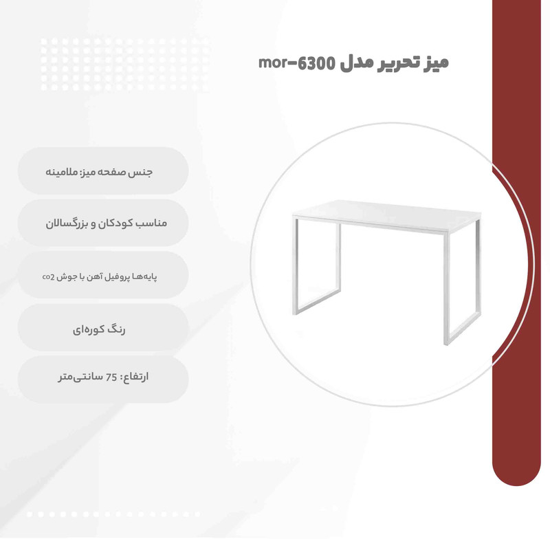 جنس صفحه میز ملامینه میباشد که سازگار با محیط زیست و ضدحساسیت میباشد و مناسب کودکان و بزرگسالان میباشد. پایهها پروفیل آهن با جوش co2 و رنگ کورهای پرداخت شده است.