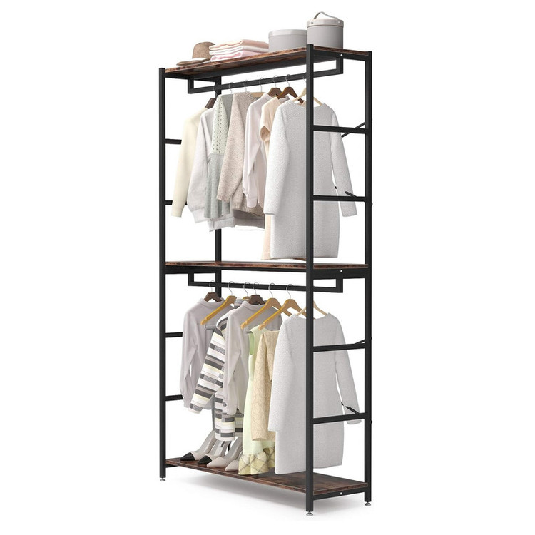 طراحی صنعتی و یکپارچه سازی با سیستم عامل، کمد لباس بسیار بزرگ با نوار دوتایی برای ذخیرهسازی پیراهنهای شما، بلوز، ژاکت شلوار، و سایر لوازم جانبی. اضافه کردن فضای بیشتر برای نیازهای شما. طراحی جمع و جور آن را برای هر مکانی از خانه شما ایده آل است بدون اینکه فضای زیادی اشغال کند. یا به عنوان قفسه پوشاک درجه تجاری در فروشگاه لباس.لطفا توجه داشته باشید همه محصولات ما با دست اندازه گیری می شوند، شاید خطای ابعاد (2-3 سانتی متر) وجود داشته باشد. رنگ های نمایش داده شده ممکن است با رنگ های واقعی بسته به تنظیمات مانیتور و صفحه نمایش متفاوت باشد. جنس صفحه میز ملامینه میباشد که سازگار با محیط زیست وضدحساسیت میباشد و مناسب کودکان و بزرگسالان میباشد. پایه ها پروفیل اهن با جوش co2 و رنگ کوره ای پرداخت شده است. رنگ پایه ثابت میباشد. با انتخاب رنگ، رنگ صفحه تغییر میکند