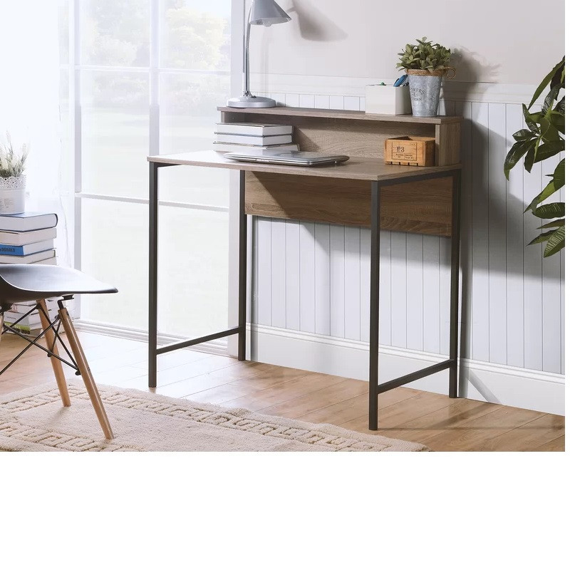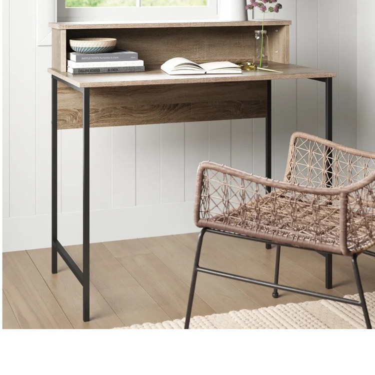 این میز با شبهه مینیمالیستی و طراحی متریال مخلوط ، جلوه ای ساده از خانه مزرعه ساحلی را به دفتر خانه شما اضافه می کند. این صفحه میز روی یک پایه فلزی با چهار پایه باریک و میلگرد برای طراحی باز قرار گرفته است. یک صفحه کوچک متواضعانه و پایان کار به این معنی است که شما مجبور نیستید این میز را به دیوار تکیه دهید.عرض آن 50cm است ، بنابراین می تواند در اتاقهایی که فضای کمی دارند جای گیرد