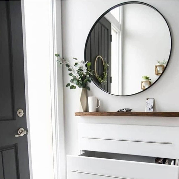 آینه به شکل دایره و دارای قاب فلزی با رنگ کوره ای میباشد. برای نصب آینه از یک میخ بزرگ یا رول پلاک استفاده شود