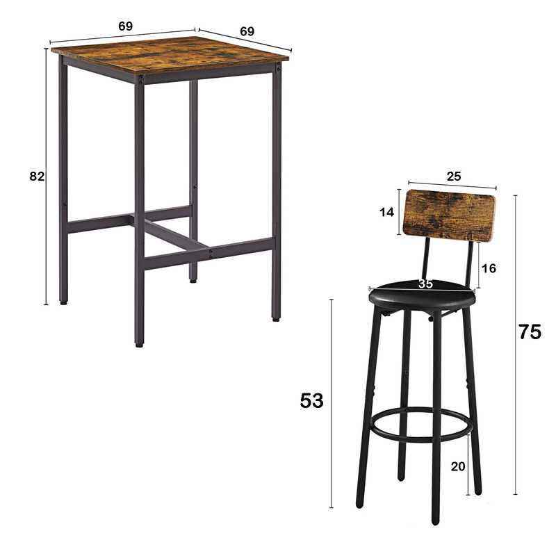 ارتفاع کفی صندلی ها 53 هستش و ارتفاع کلی انها 75 سانتی متر می باشد. روی صندلی از چرم مشکی استفاده شده