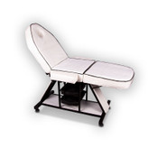 تخت ماساژ یک سطح برجسته است که توسط درمانگران برای ماساژ مراجعه کنندگان استفاده میشود. ممکن است به صورت دستی، یا برقی، ثابت، متحرک و یا قابل تنظیم باشد. برخی از تختهای ماساژ چند منظوره هستند و ممکن است برای خدمات دیگری غیر از ماساژ؛ در اسپا و سالنها استفاده شوند. آنها همچنین در مراکز طب سوزنی، فیزیوتراپیستها، کلینیکهای درمانی و کلینیکهای زیبایی قابلی استفاده میباشند. در ساخت پایه ها و بدنه ی تخت ماساژ سه تیکه، آهن به کار می رود که چون از استقامت بالایی برخوردار است قابلیت تحمل وزن بالایی به آن می بخشد. در لایه های میانی تشک، فوم سرد مرغوب به کار رفته که زیبایی ظاهری محصول را در بلند مدت حفظ می کند. به کار گیری چرم پارچه ی اصل به عنوان روکش محصول از ویژگی های مثبت آن شمرده می شود. این محصول در سه رنگ سفید ، مشکی ، طلایی تولید می شود.