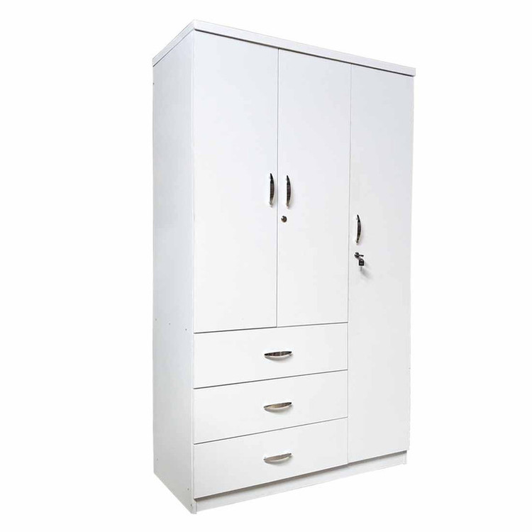 استفاده از کمد لباس در اتاق یا هر فضایی که نیاز به دسته بندی و نگهداری بهتر پوشاک داریم، اهمیت زیادی خواهد داشت. استفاده از کمد لباسی که در تصویر مشاهده میکنید برای تمام افراد در هر سنی مناسب است و طوری طراحی شده که همه را راضی نگه دارد. در واقع استفاده از کشو، کابین و رخت آویز برای بسیاری از ما رایج و همیشگی است پس میتوان گفت که کمد لباس کد CL07 در آپارتمان با توجه به فضای کمی که داریم، بسیار کاربردی خواهد بود. کمد دارای قفل بوده و میتوان برای حفظ امنیت آن را قفل کرد. در کمد لباس کد CL07، سه عدد کشو قرار گرفته است که برای قرارگیری لوازم شخصی و لباس کاربرد خوبی دارد. در بالای بدنه و کشوها، رخت آویز قرار گرفته و با میله میتوان توام لباسهای مهمانی، رسمی یا کاپشن و سایر لباسها را آویزان کد. در قسمت کنار کمد لباس کد CL07 از چندین کابین بهره برده شده تا بتوان ابزار و لوازم شخصی و دکوری درون آن جای داد.