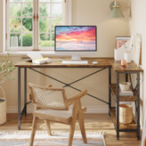 در بخش کناری میز، قفسههایی تعبیه شده که میتوانید از آنها برای نگهداری کتاب، لوازم دکوری، پرینتر یا سبدهای نظمدهنده استفاده کنید. این طراحی، هم به نظمبخشی بهتر کمک میکند و هم ظاهری منسجم به فضای شما میبخشد.