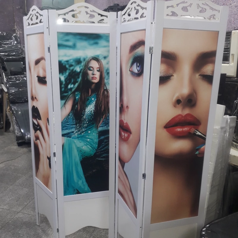 پارتیشن آرایشگاهی چهار لنگه عکس دار وساده هزینه ارسال درب منزل توسط مشتری پرداخت
