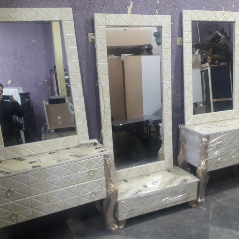 دکور آرایشگاهی سه تیکه چوبی پایه سلطنتی دررنگ بندی سفید مشکی کرم هزینه ارسال درب منزل توسط مشتری پرداخت میشود