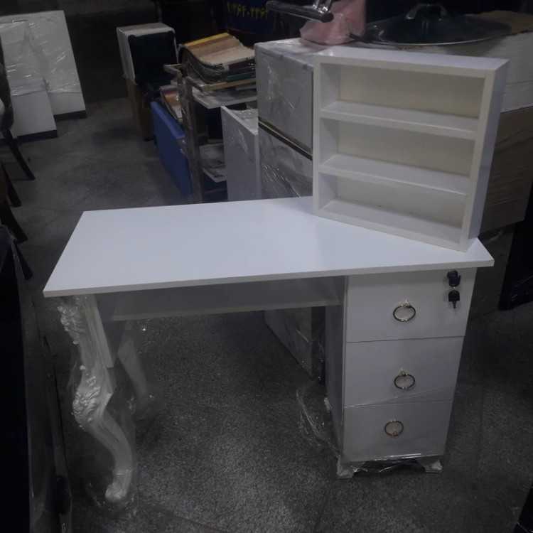 میز ناخن ملامینه همراه استند لاک دررنگ بندی سفید ومشکی 40دریک متر