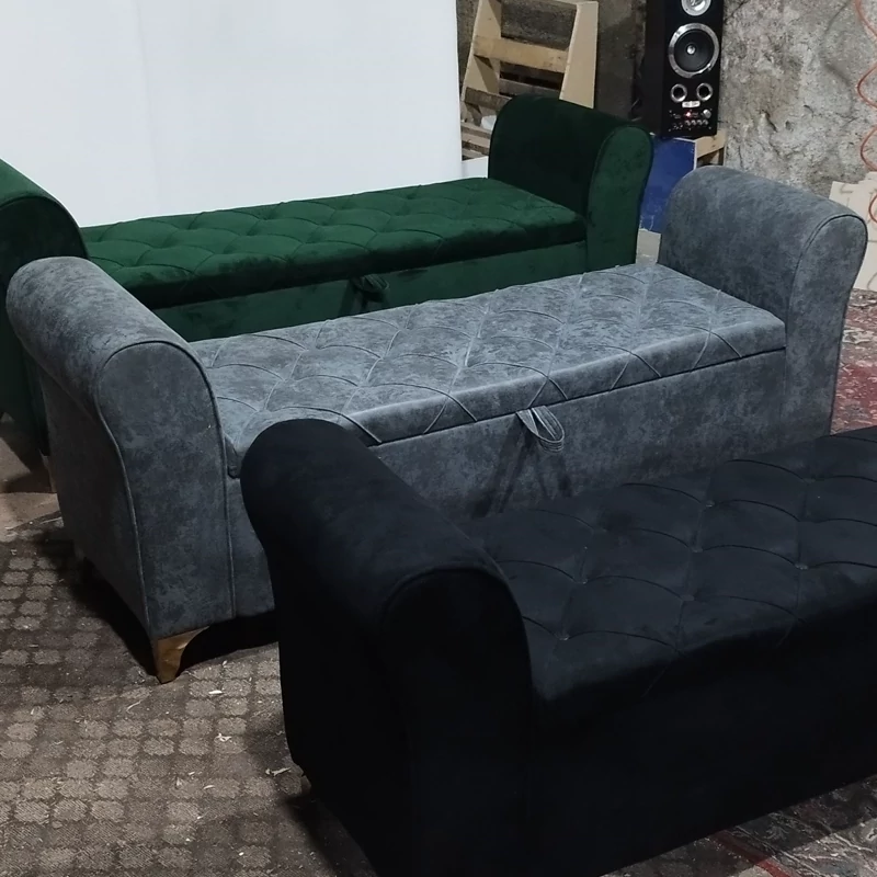پاف لاوست سه نفره شیک پایه فلزی طلایی باکسدار جکدار دررنگ بندی متنوع پارچه هزینه ارسال درب منزل توسط مشتری پرداخت میشود