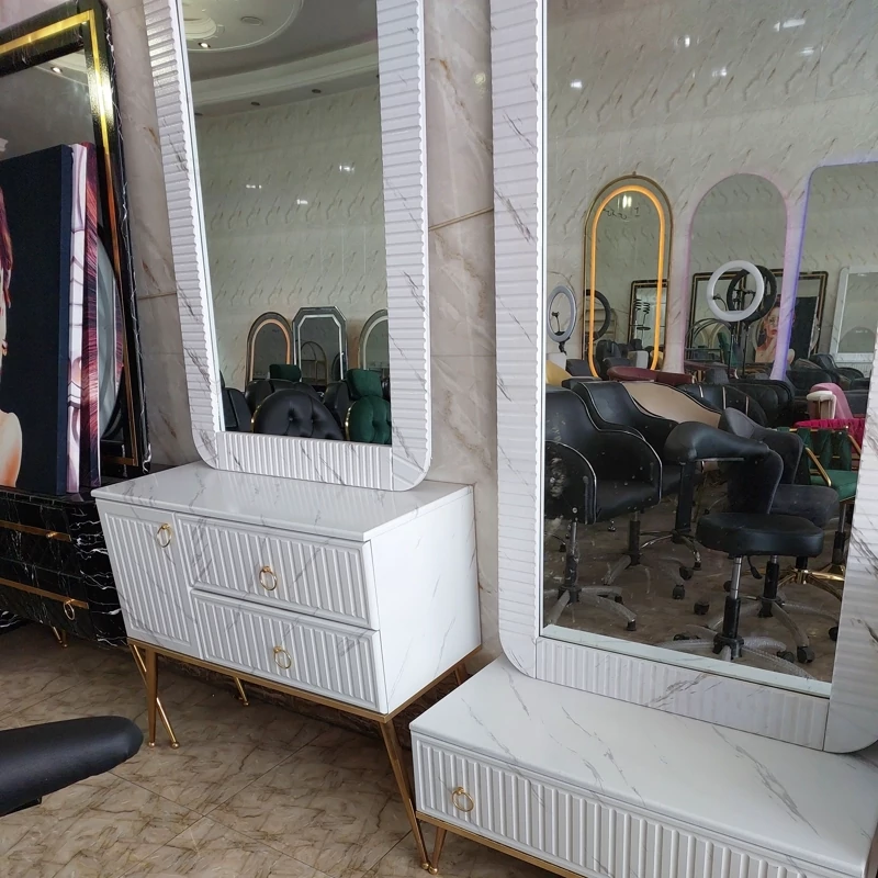 دکور آرایشگاهی سه تیکه دررتگ بندی سفید ومشکی وطوسی سه دکور با آینه هزینه ارسال به صورت پس کرایه به عهده مشتری میباشد