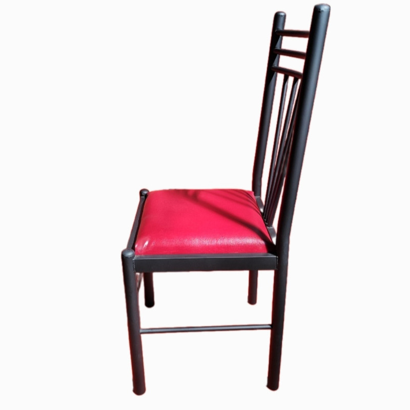صندلی مناسب برای میز ناهارخوری و نشیمن راحتی ابعاد نشیمن 35 در 35 سانتیمتر میباشد. جنس کفی از چرم و رنگ آن زرشکی است. جنس پایه آهن ورق ضخیم میباشد و استحکام بالایی دارد. رنگ پایه از نوع کوره ای الکترواستاتیک میباشد.