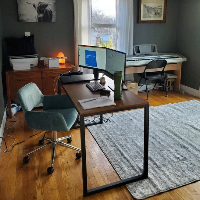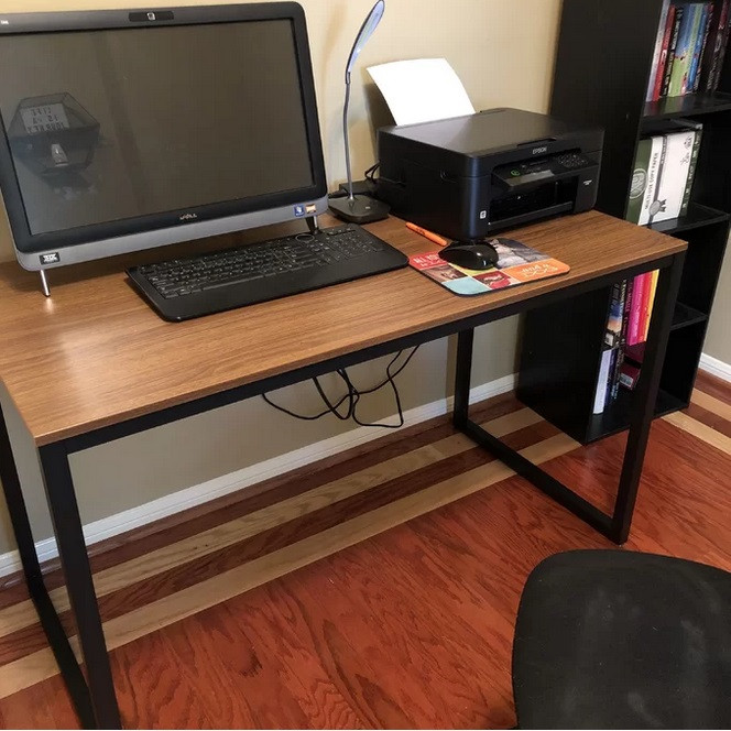 خواه در حال کار روی لپ تاپ خود باشید و یا نوشتن یادداشت های تشکرآمیز برای خانواده و دوستان ، فضای کار کافی این میز تحریر مستطیل شکل ساده را دوست خواهید داشت. این قطعه ساخته شده از یک قاب استیل مشکی ، دارای رومیزی چوبی ساخته شده .