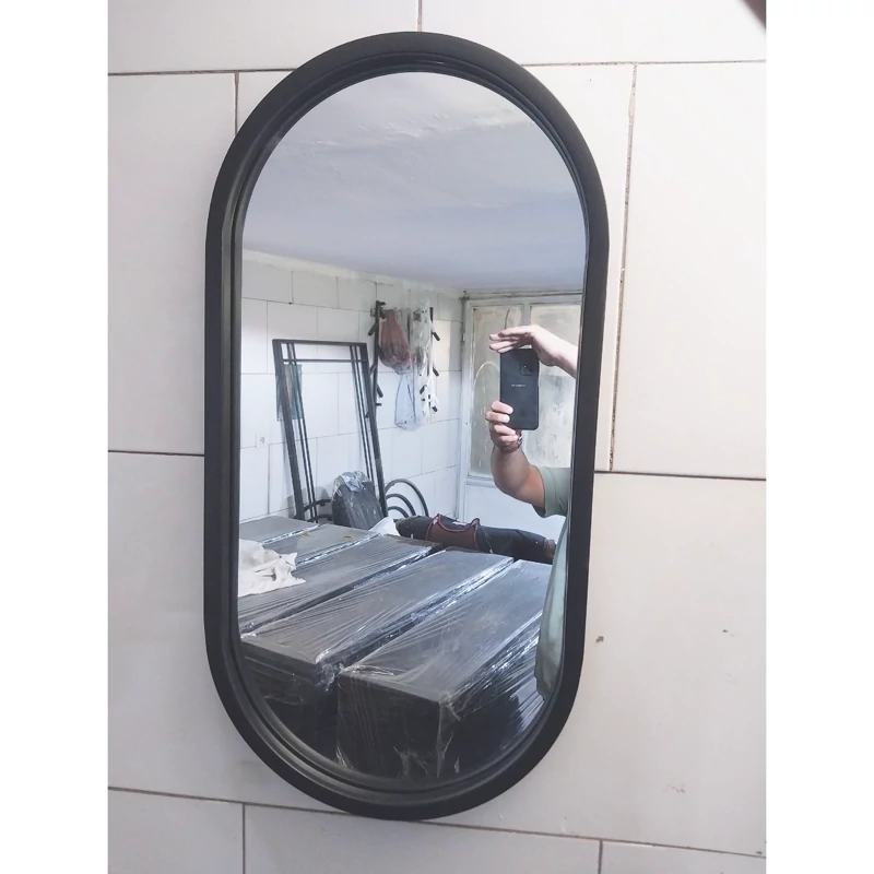 آینه کپسولی بیضی فریم فلزی ابعاد 50 در 100 سانتی متر، ارسال به خارج از شهر تهران از طریق باربری و پس کرایه