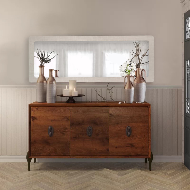 آینه نیم قد یک آینه باکیفیت و دارای سایز 39x88 می باشد و در عین سادگی شکل زیبایی را به محیط میدهد. همانطور که در تصاویر هم میبینید برای استفاده از آن یا باید به صورت ایستاده به دیوار تکیه بدهید یا از طریق حفره یی که در پشت آینه تعبیه شده با یک میخ یا به صورت پیچ (استفاده از رول پلاک ) هم به صورت افقی و هم به صورت عمودی آویزان کنید. این محصول از کیفیت و طراحی منحصر به فردی برخوردار است. همچنین تولید شده از ورق با روکش ملامینه چوب (ضد آب) می باشد. از این محصول می توان برای زیبایی دکوراسیون داخلی خانه، محل کار، میز آرایش، جاکفشی، همچنین دیوارهای پشت مبل و کنسول و... استفاده نمود. با توجه به اینکه روکش آن ملامینه و ضد آب می باشد از آن می توان در سرویس های بهداشتی هم استفاده نمود.توصیه می شود.