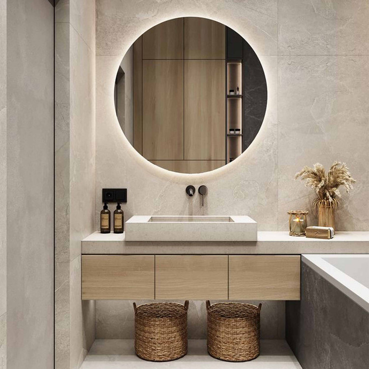 دور آینه کاملا صاف و صیقلی پشت آینه کاملا با MDF کاور شده LED کم مصرف با طول عمر بالا نصب آسان با فیتینگ دیواری آینه سوپرکلییر 4 میل